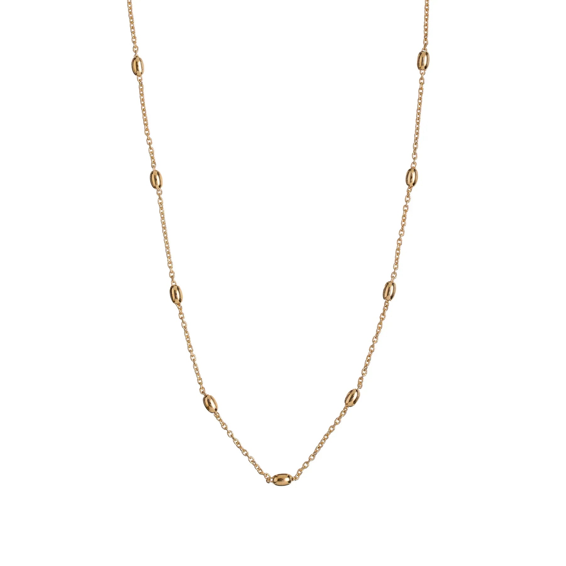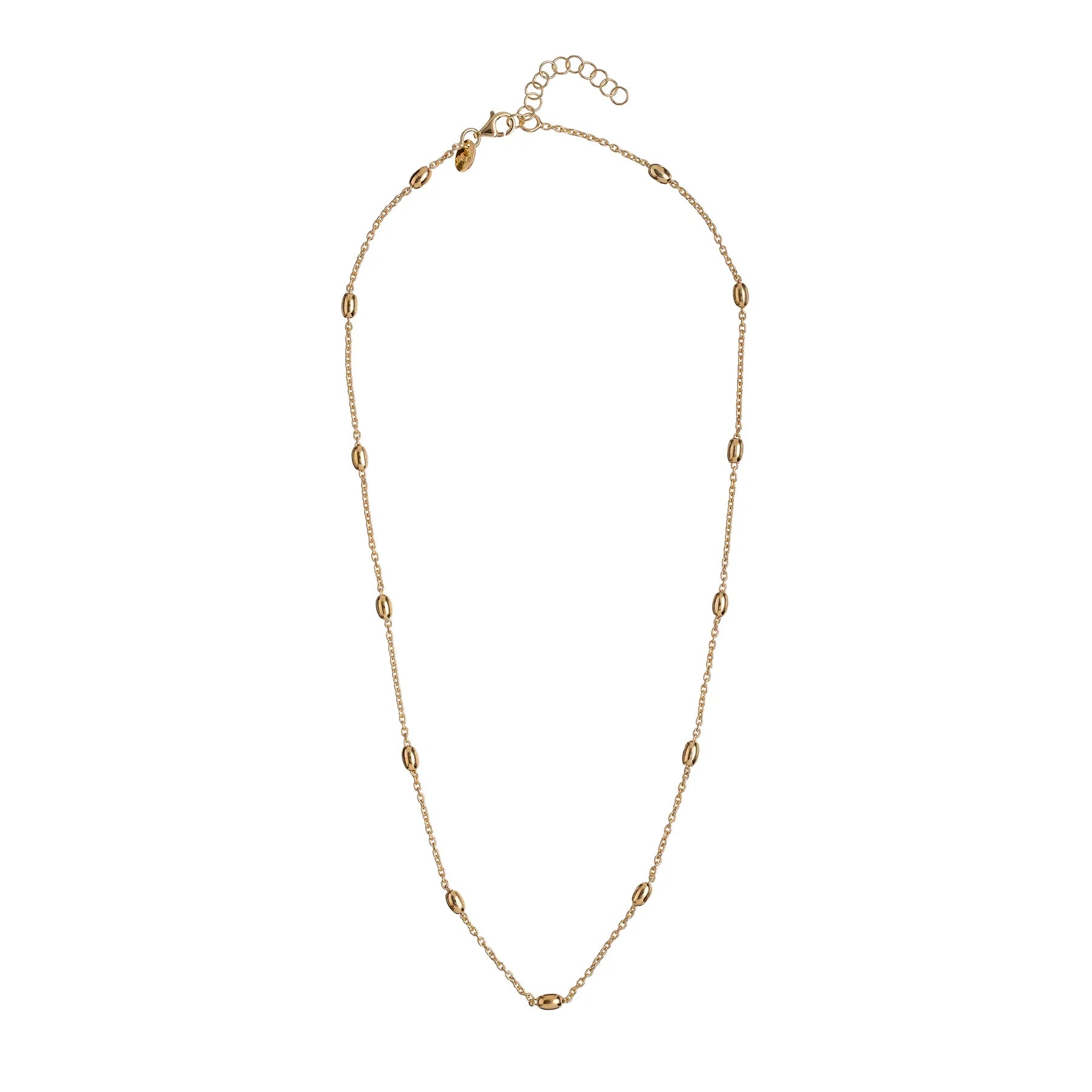 Halskette mit kleinen Kugeln entlang der Länge, aus 925er Silber vergoldet. Vielseitige Halskette, die perfekt mit anderen Kollektionen kombiniert werden kann.