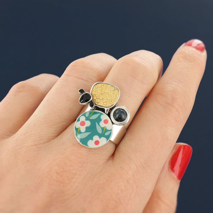 - Material: Metall, Bunte Harze mit handgemalten Mustern, getönte Hämatit