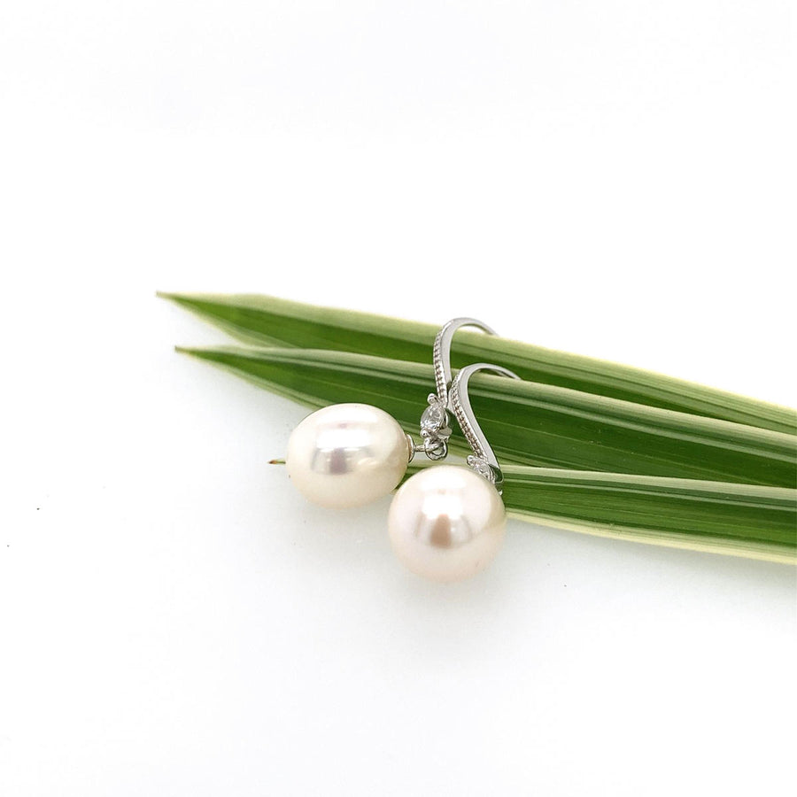 Ohrringe mit Süßwasserperle, Sterlingsilber, Zirkonia