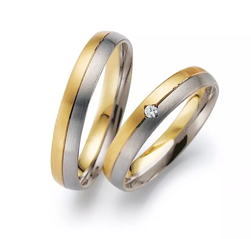 Eheringe Set, Weißgold/Gelbgold, 4 mm, Brillant