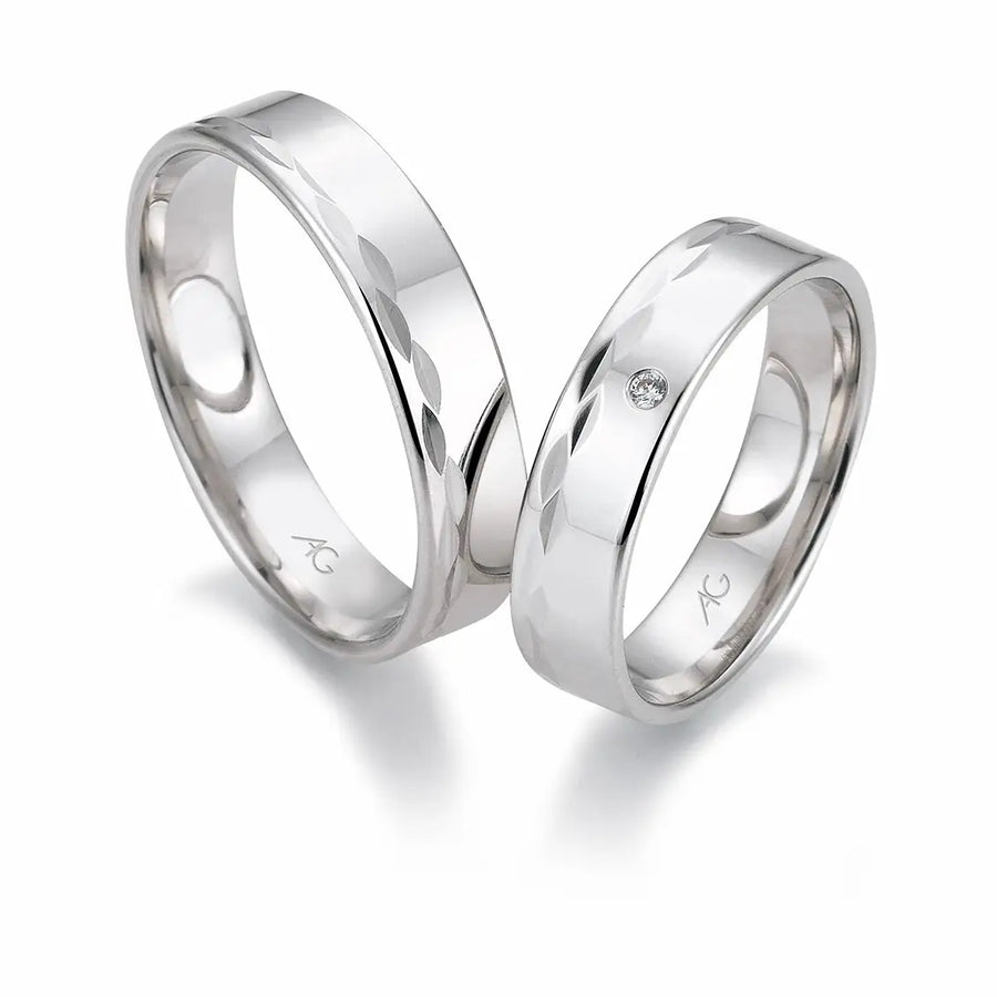 Eheringe Set, Weißgold, 5 mm, Brillant