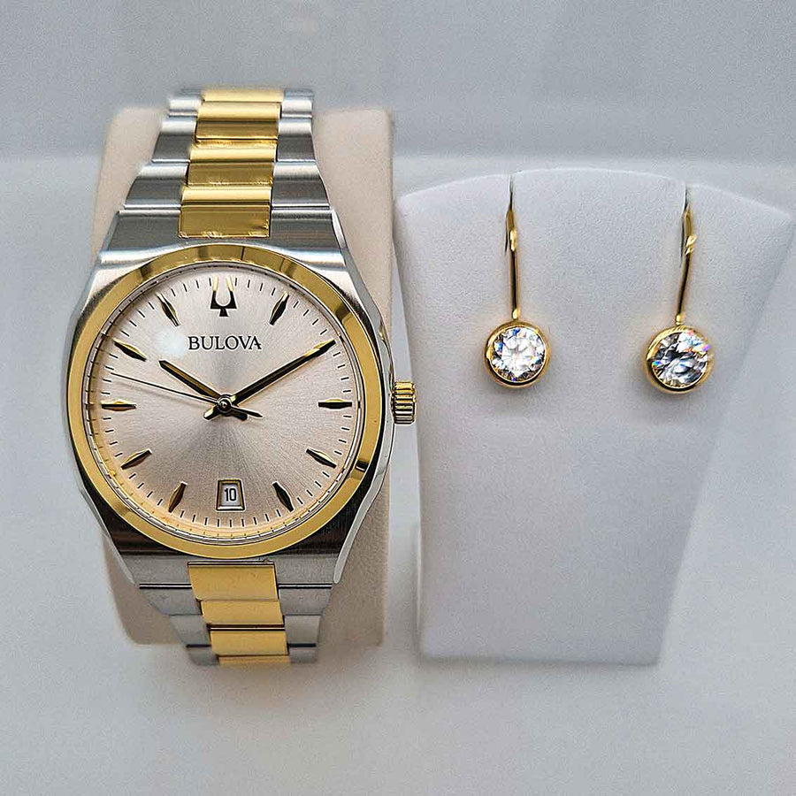 Geschenkset Damenuhr & Ohrstecker vergoldet