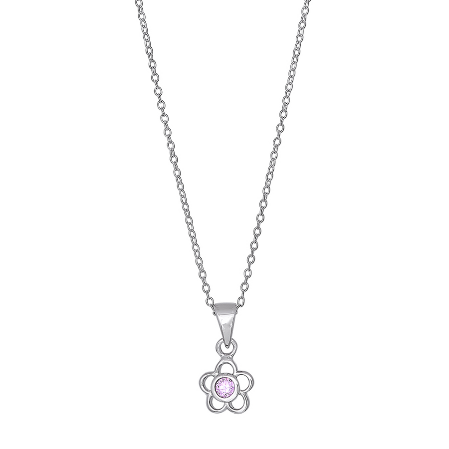 NOA Kids Halskette Blumenform Sterlingsilber, rosa Zirkonia