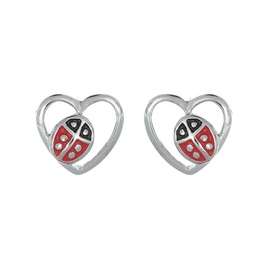 NOA Kids Ohrstecker, Herzform, rosa Emaille, Sterlingsilber