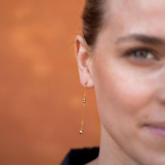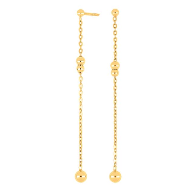 Die zeitlosen Ohrringe sind aus echtem Sterlingsilber und mit 18 Karat Gold vergoldet. Sie sind 50 mm lang und ein Teil der Serie Beadit52.