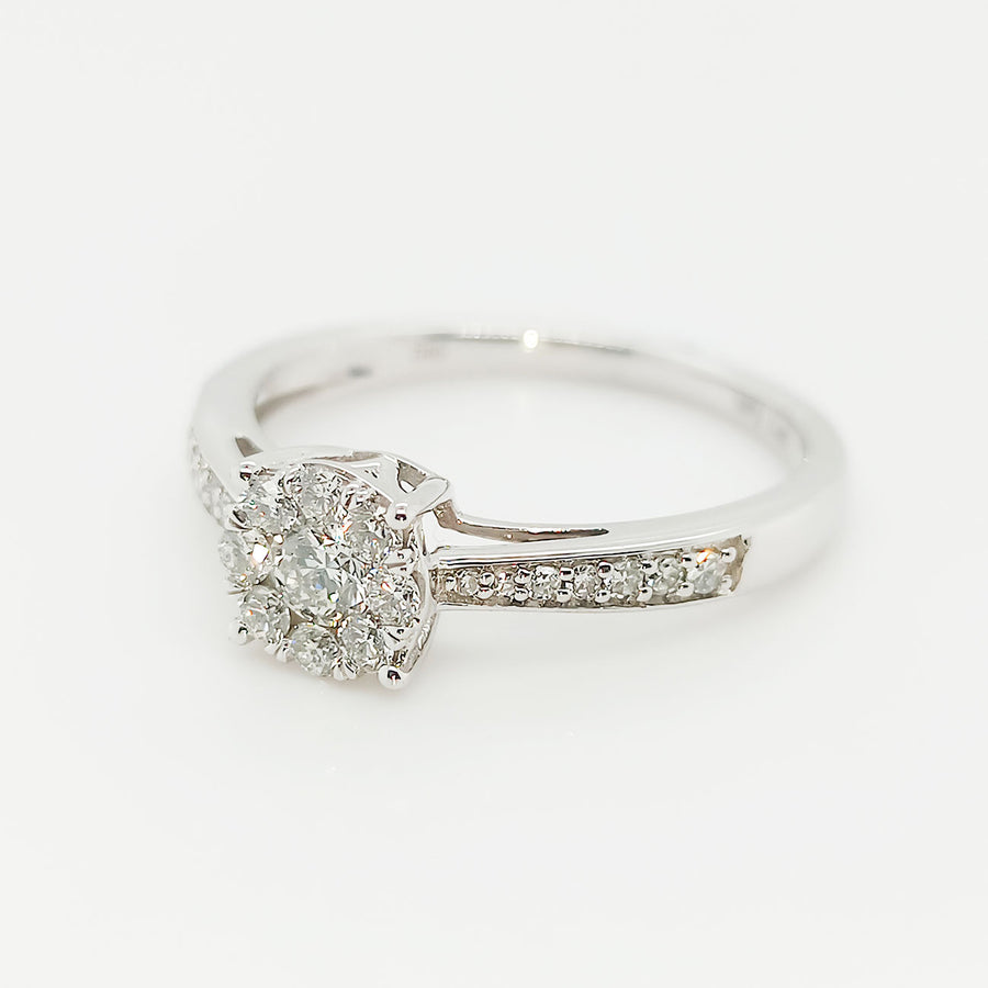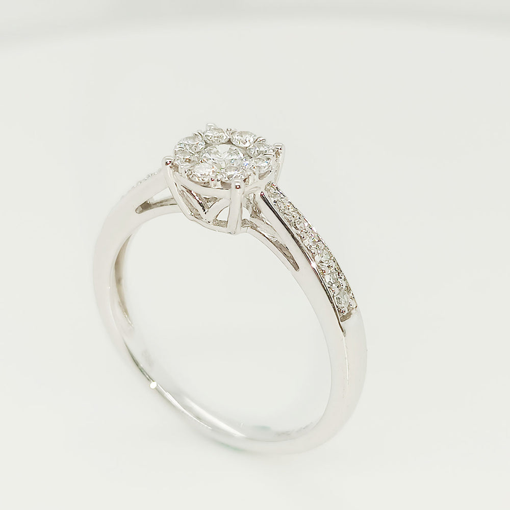 Eleganter Verlobungsring aus hochwertigem 585 Weißgold, besetzt mit Brillanten im Gesamtgewicht von 0,40 ct. Das zeitlose Design und die präzise Verarbeitung machen ihn zu einem edlen Begleiter für den besonderen Moment. In Ringgröße 55 erhältlich.