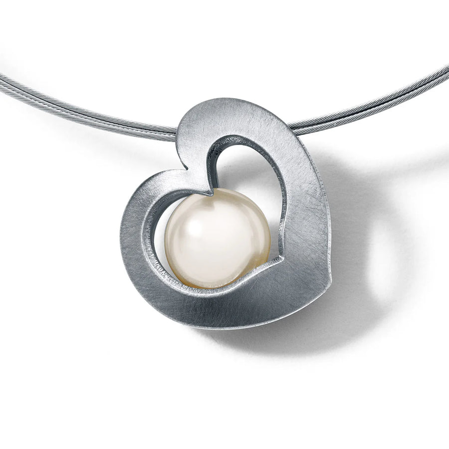 Herzanhänger mit loser Kugel, 19 x 17 mm, ALPENHERZ Edelstahl, ohne Collier