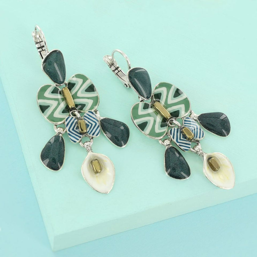 - Material: Metall, farbige Harze mit handbemalten Mustern, goldenes Hämatit, Glimmerpulver