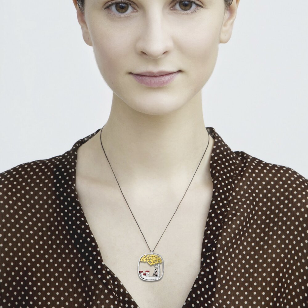 Anhänger aus 925 Sterlingsilber von Kiss The Frog, teils 24K goldplattiert, teilweise kalt-emailliert, handbemalen.
