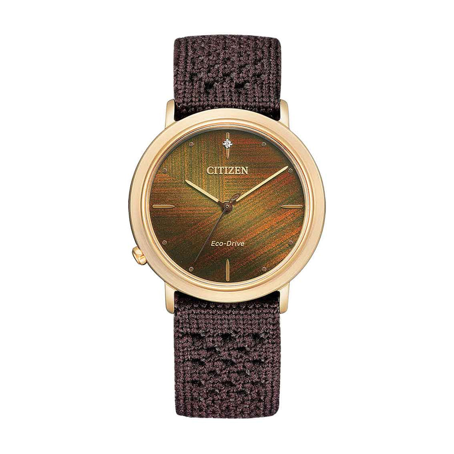 - Zifferblatt: strukturiert, mit künstlichem Edelstein (im Labor gewachsen)