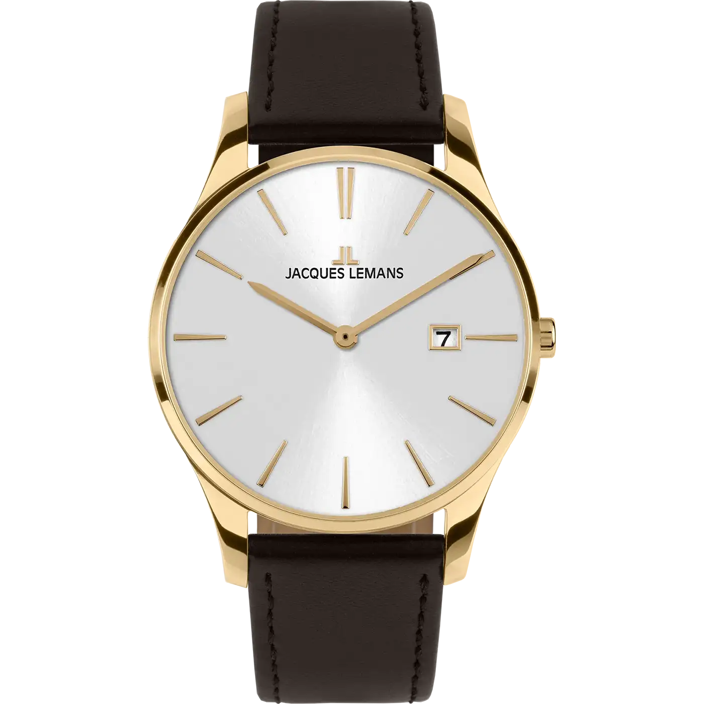 - Zifferblatt: silber, Striche und Zeiger IP-gold