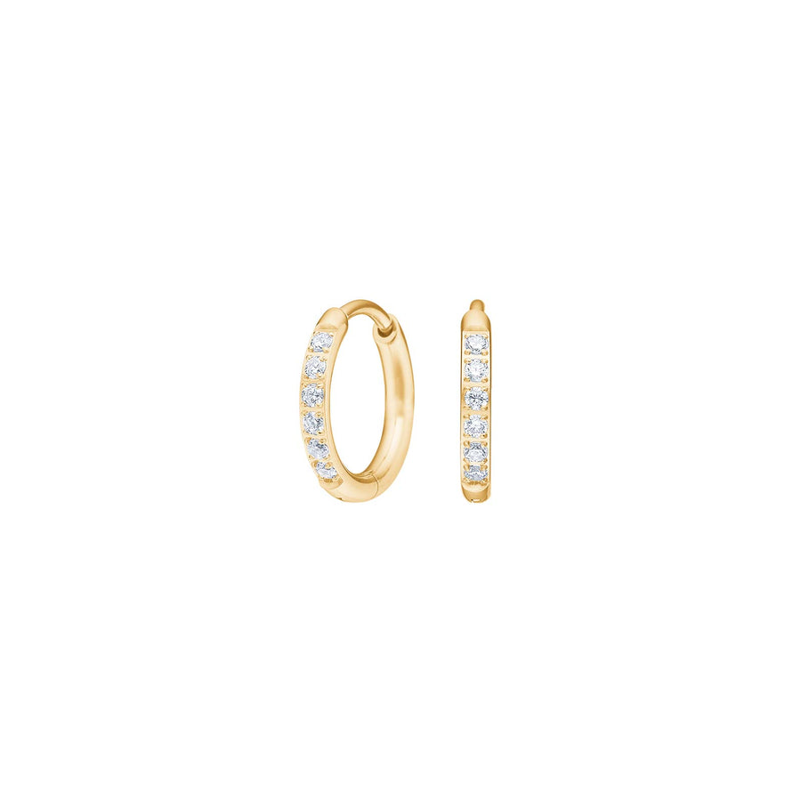 Diese vergoldeten Titanium-Creolen mit 12 mm Durchmesser sind mit funkelnden Zirkonia-Steinen verziert und bieten eine elegante Kombination aus Robustheit und Glanz. Das hypoallergene Material sorgt für hohen Tragekomfort, auch bei empfindlicher Haut. Ein stilvolles Schmuckstück, das jedem Outfit eine besondere Note verleiht.