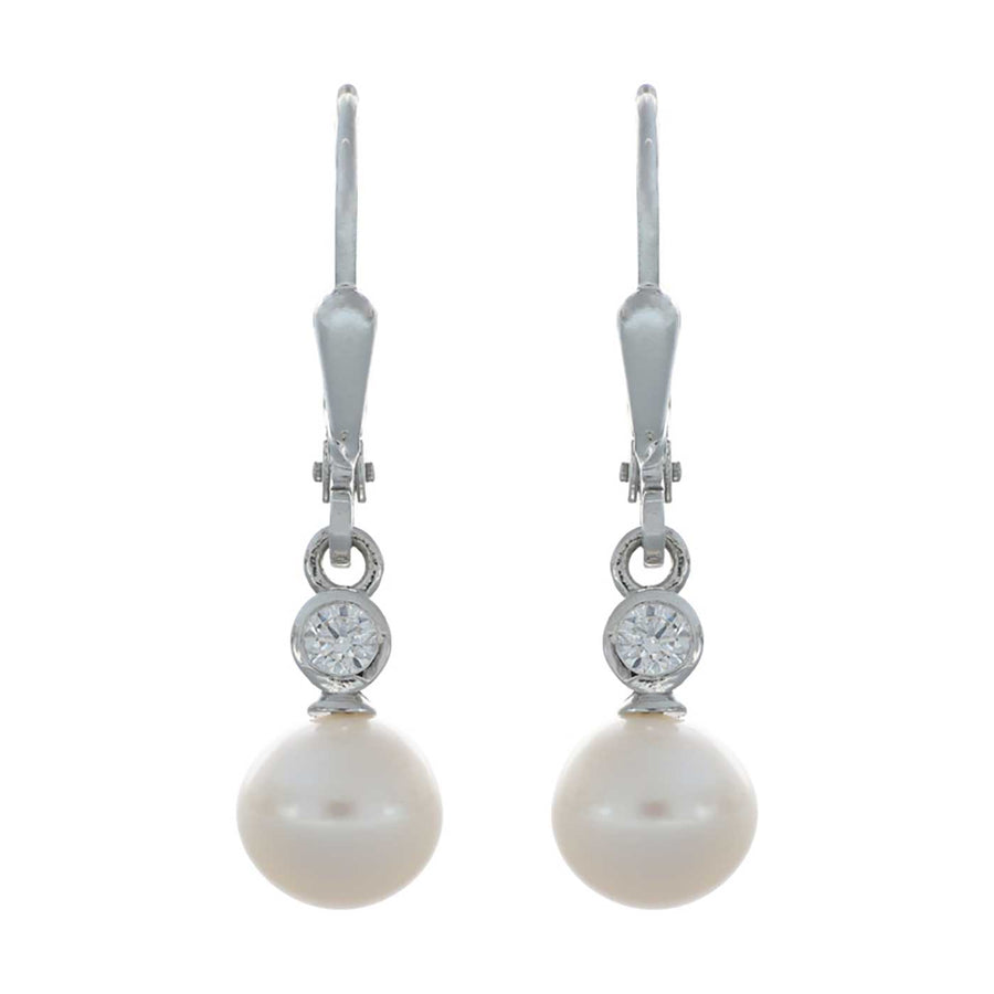 Ohrhänger Sterlingsilber, 2 Zirkonia, 2 Kulturperlen SW 6,5 mm