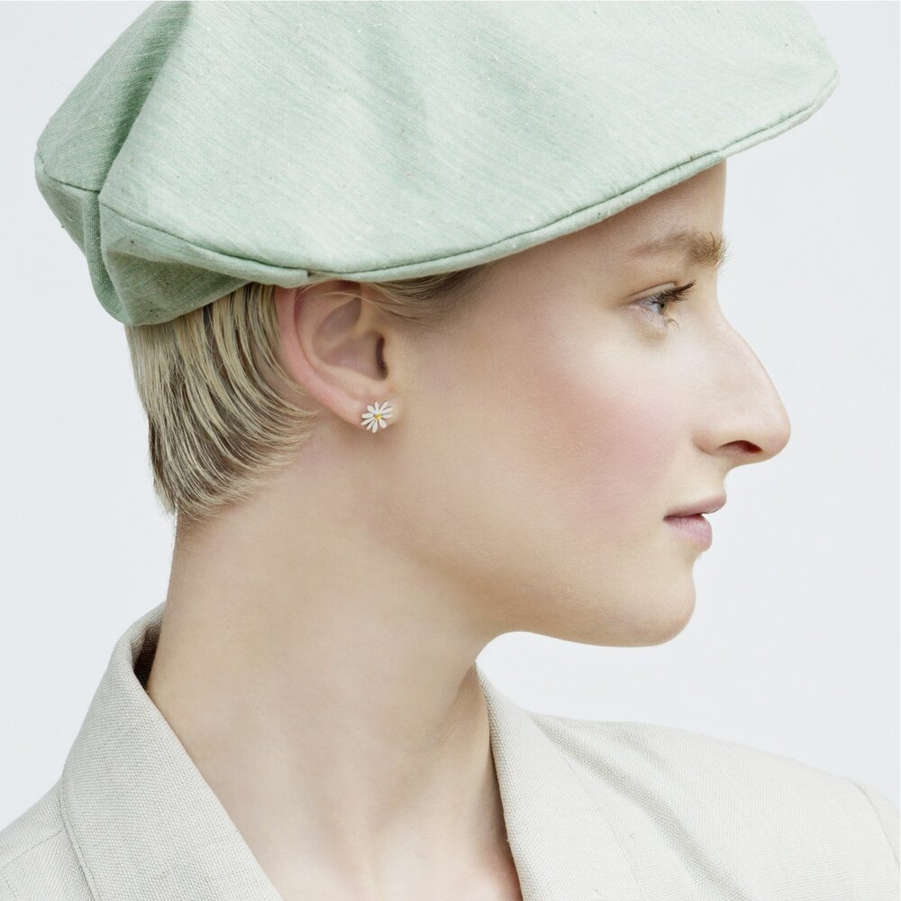 Damenohrringe aus 925 Sterlingsilber, Blumenmotiv, teilweise 24K goldplattiert, Details emailliert, handbemalen. Größe ca. 1 cm, Gewicht 1 g
