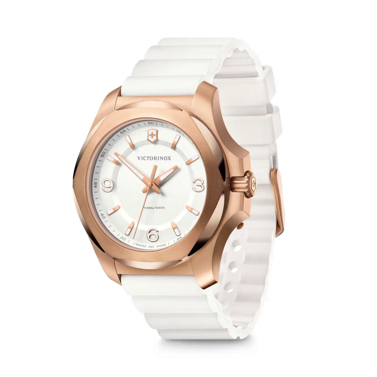 Eine leichte, souveräne Uhr, die jedes Abenteuer mitmacht. Die I.N.O.X. V von Victorinox – Fortschrittlich, funktional und formvollendet. Ein Schweizer Zeitmesser, der Massstäbe im Design von Damenuhren setzt.