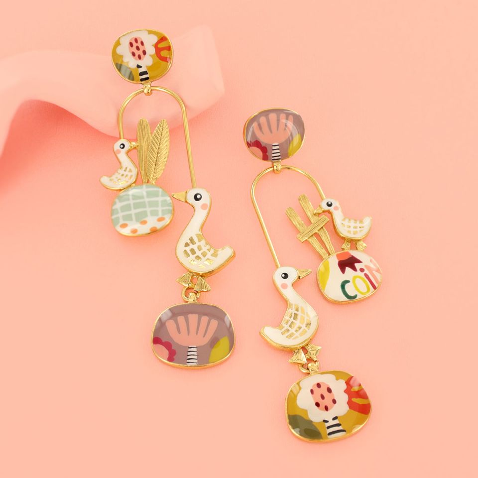 Entdecken Sie die exklusiven Ohrhänger Plume aus der Taratata-Kollektion. Diese handgefertigten Statement-Schmuckstücke vereinen kunstvolle Handmalerei mit filigranen Federmotiven und edlen Natursteinen – ein Symbol für Leichtigkeit, Freiheit und natürliche Eleganz.