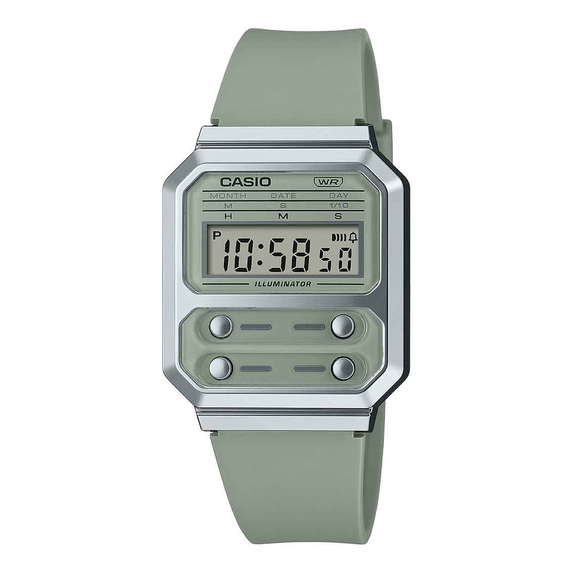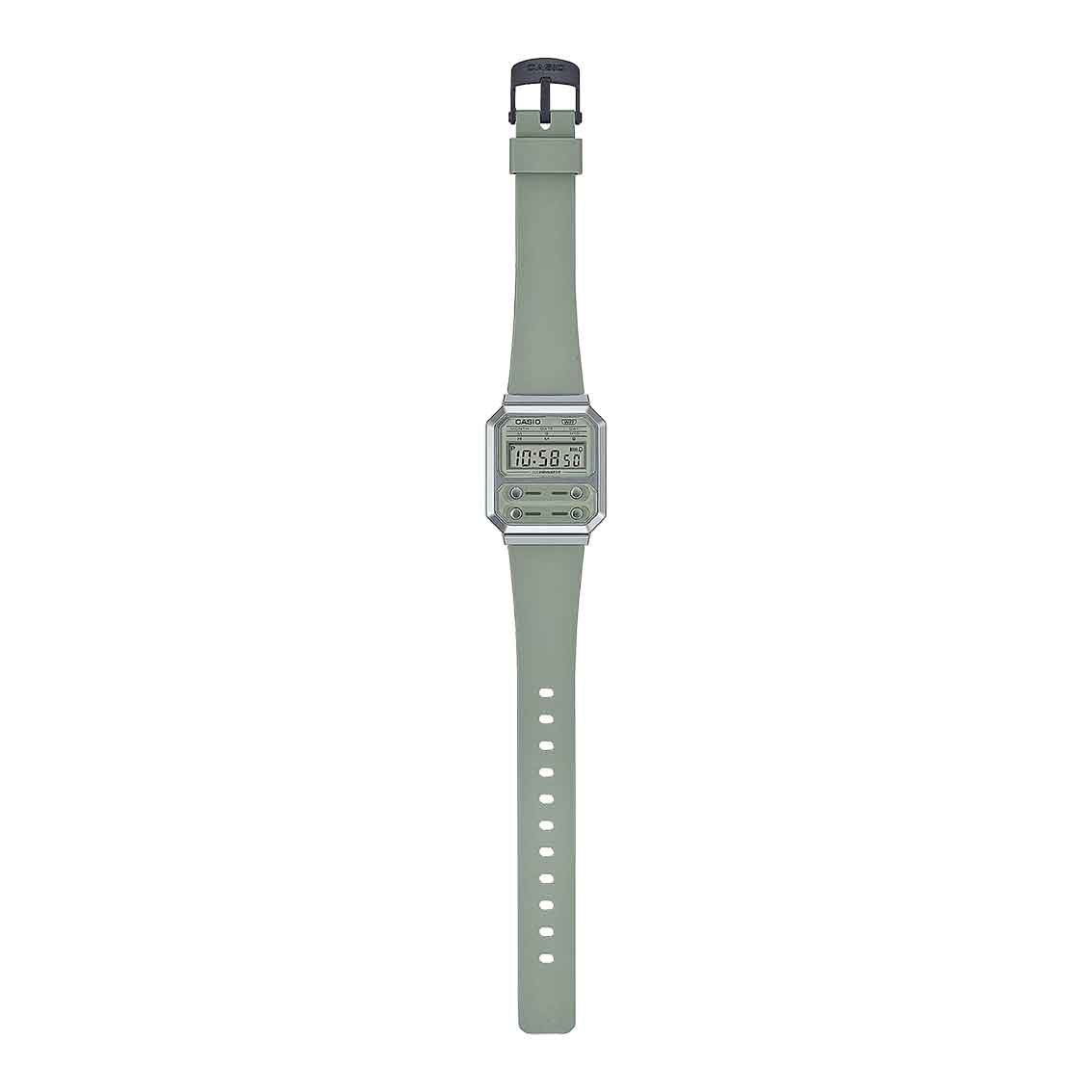 Casio A100WEF-3A EDGY Collection – Retro-Uhr in Grün mit Edelstahl