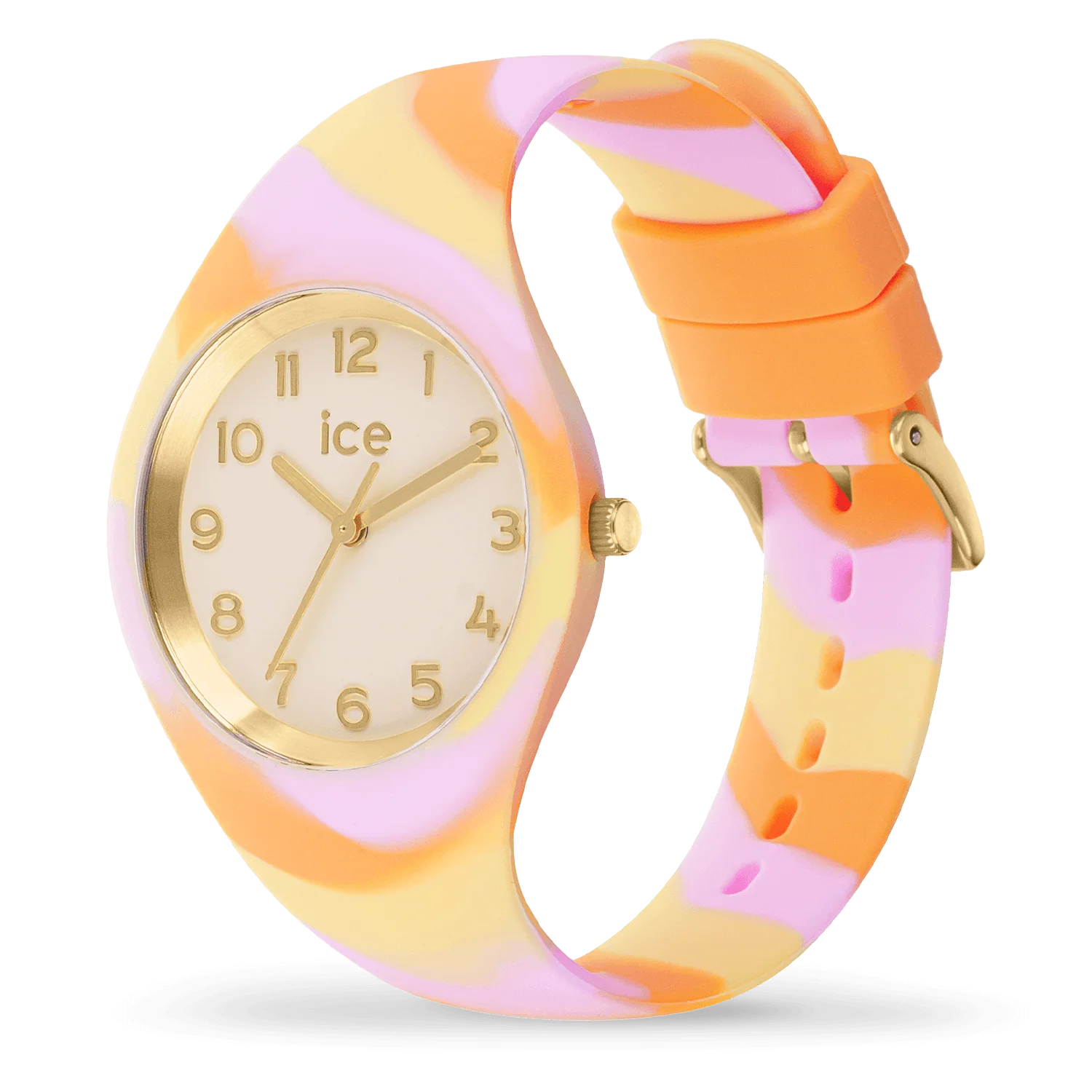 Tauchen Sie ein in die warmen Farbtöne eines Sonnenuntergangs mit der ICE Tie and Dye Pink Honey. Dieses verspielt gestaltete Accessoire verbindet Gelb, Orange und Pink in einem fesselnden Tie-and-Dye-Muster, das an die süße Wärme von Honig erinnert. Perfekt für jeden Anlass – ob beim Treffen mit Freunden oder auf spontanen Abenteuern – bringt diese Uhr einen Hauch von Sonne in Ihren Alltag und setzt ein lebendiges Statement an Ihrem Handgelenk.