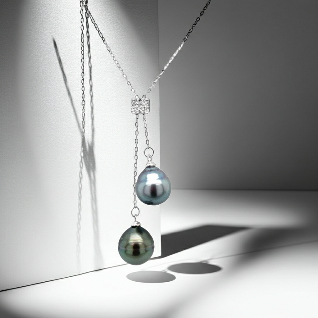 Halskette Sterlingsilber mit 2 Tahiti-Perlen 10 mm