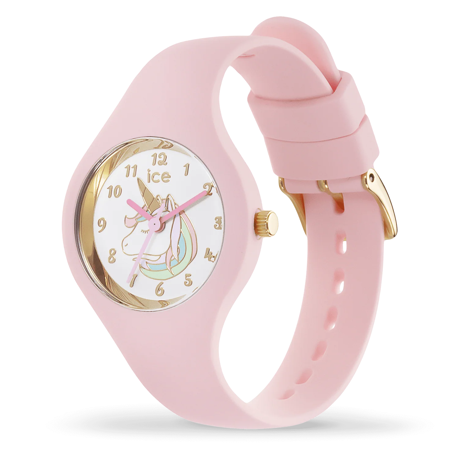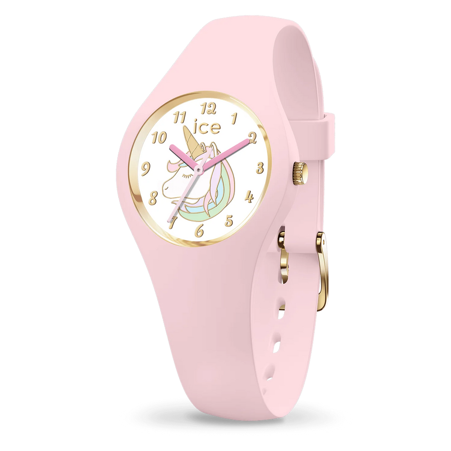 Zaubern Sie mit der ICE Fantasia Pink Uhr einen Hauch von Spaß und Magie an Ihr Handgelenk! Diese kleine hellrosa Uhr mit einem bunten Einhorn und goldene Zahlen in Schreibschrift wird Sie begeistern! Etwas zu lesen oder Lesenlernen, gutgelaunt die exacte Uhrzeit!