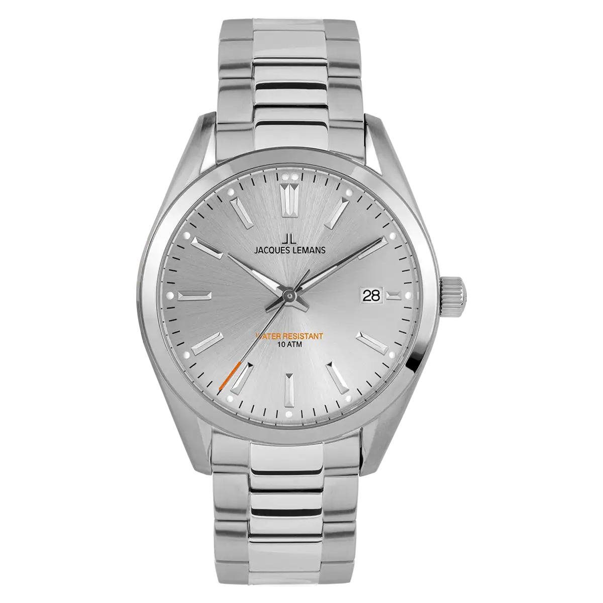 - Zifferblatt: Silber mit Datum auf 3-Uhr-Position